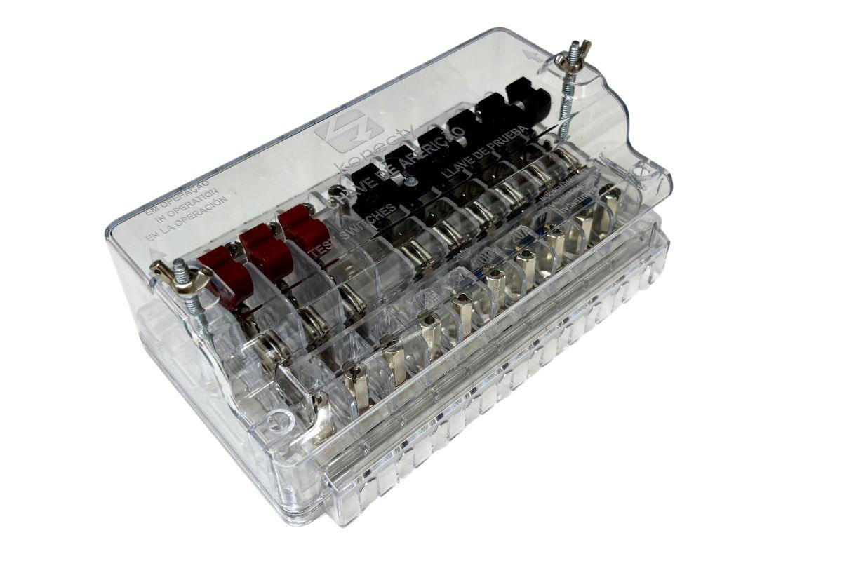 Injetada em material plástico transparente de alta resistência contra choques mecânicos. A tampa é removível e possui dispositivos de selagem contra fraudes. Projetada de forma a proteger os terminais de ligação e proporcionar mais agilidade ao operador. Possui identificação de forma indelével com as informações sobre o fabricante, produto, modelo, ano de fabricação, tensão e corrente.